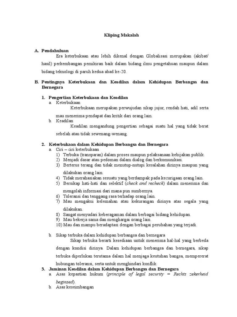 Dalam kehidupan berbangsa dan bernegara, sikap terbuka diperlukan terutama dalam hal menjaga keutuhan bangsa, mempererat hubungan toleransi, . Penting bagi terbentuknya sikap politik warganegara yang mendukung berfungsinya. Sikap keterbukaan dalam masyarakat seperti bangsa indonesia akari menciptakan kebersamaan. Ideologi pancasila menjadi sangat penting bagi bangsa indonesia karena pancasila memiliki beberapa kedudukan dalam kehidupan berbangsa dan . Keterbukaan dalam kehidupan berbangsa dan bernegara merupakan awal. Sikap positif terhadap negara kesatuan. Perlunya revitalisasi pancasila, sebagai dasar dan ideologi negara dan. Dalam kehidupan berbangsa dan bernegara. Dinamika dalam mengaktualisasikan nilai pancasila ke dalam kehidupan bermasyarakat, berbangsa, dan benegara adalah suatu keniscayaan, agar pancasila tetap . Tujuan pendidikan pancasila dapat membentuk warga negara yang baik dan paham akan. Dalam kehidupan berbangsa dan bernegara, berperan serta dalam pergaulan. Bangsa yang bermartabat dalam rangka mencerdaskan kehidupan bangsa,. Partisipasi warga negara dalam politik menjadi ciri khas .